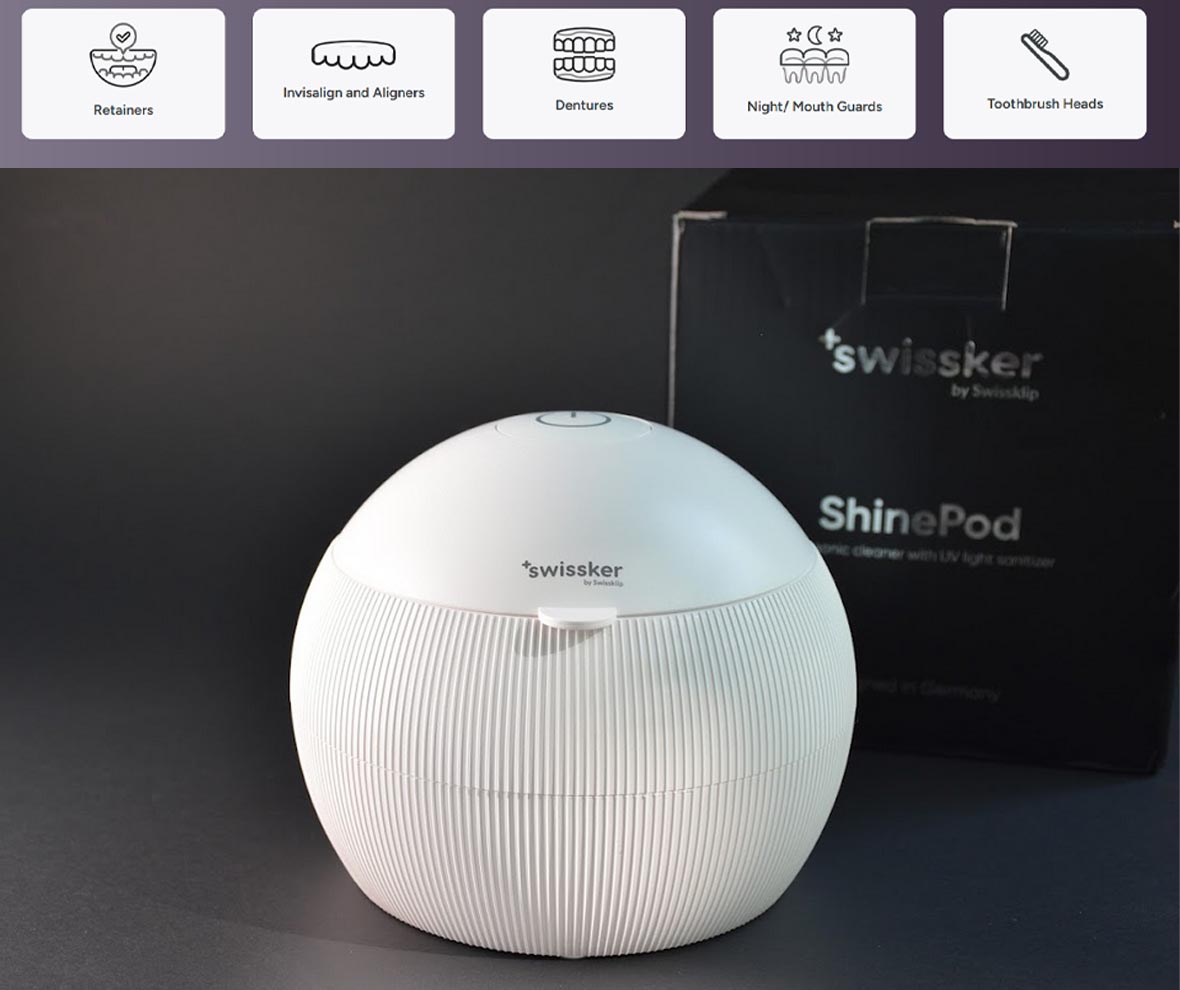 The ShinePod from Swissklip sets a new standard in at-home dental cleaning with its powerful combination of ultrasonic and UV technology. It offers a 5-minute, hands-free cleaning cycle that eliminates 99.99% of bacteria, making it an ideal choice for busy individuals who want a quick yet thorough clean. This chemical-free device is gentle on delicate appliances and comes with a safety feature that shuts off the UV light if the lid is opened mid-cycle, providing peace of mind.