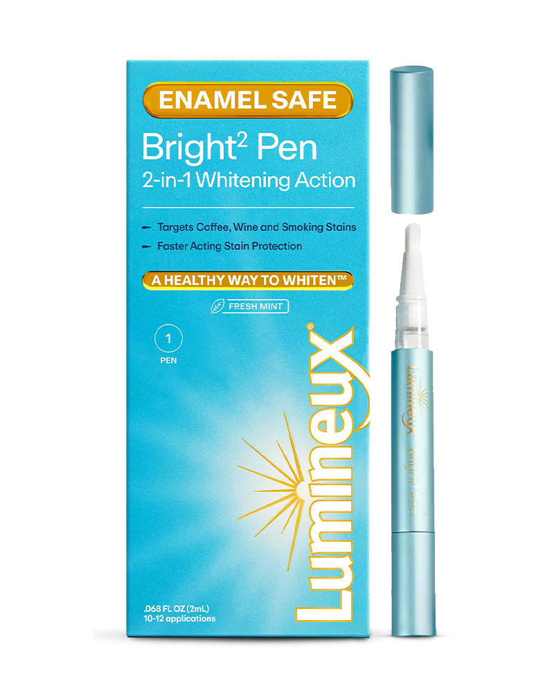 Lumineux offers a peroxide-free, plant-based whitening pen powered by coconut oil, Dead Sea salt, sage oil, and lemon peel. The pen works in two modes: stain repellent (apply 60 seconds before meals) or whiten (leave on for 30 minutes). It’s crafted for sensitive users and designed to protect enamel while brightening teeth.