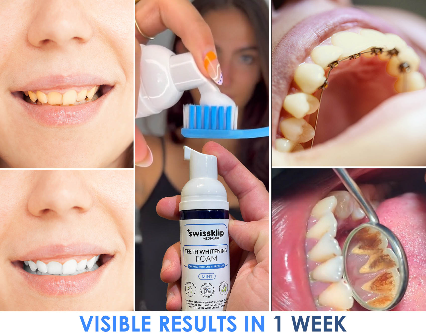 Swissklip’s foam formula is able to penetrate deeper into the pores of the teeth, which allows it to effectively remove stubborn stains that may not be removed with other products.